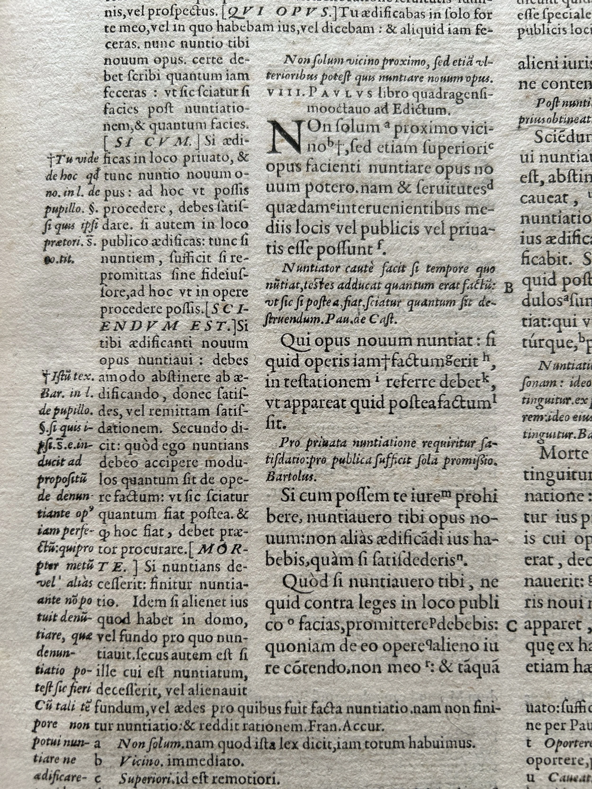 Quelqu’un (l’auteur, Accursy ??? Je ne sais pas lire le latin, désolée…) a dû l’écrire, à la main, recopier les textes de loi, à la main, ajouter ses commentaires et ses notes, à la main, puis confier le tout à l’imprimeur pour être mis en page et imprimé.